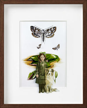 Hand-painted vintage photographs are combined with antique, scientific illustrations.